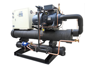 水冷冷水機(jī),又可以分為開放式,密封式(有的稱為箱型)和螺桿式. 先要申明,水冷型的冷水機(jī),都要另外加裝冷卻水塔和水泵,用以抽取熱水散熱.才能達(dá)到效好的冷卻效果. 開放式的冷水機(jī),還要另外裝一個(gè)水箱,密封式就不必了,因?yàn)樗陨韮?nèi)置了一個(gè)水箱.開放式一般會(huì)安裝在車間外某個(gè)地方,他檢修方便,但因?yàn)椴粔蛎烙^,所以就產(chǎn)生了密封式的水冷型冷水機(jī),因?yàn)樗且粋€(gè)箱體的結(jié)構(gòu),所以比較受歡迎. 但是如果您對(duì)制冷量的要求非常大的話,就要選用螺桿式的冷水機(jī)了,此時(shí)我們一般會(huì)稱之為冷水機(jī)組,大部分的廠家,如果您對(duì)冷水機(jī)壓縮機(jī)的要求達(dá)到100HP以上時(shí),他們會(huì)建議您用螺桿式的冷水機(jī).